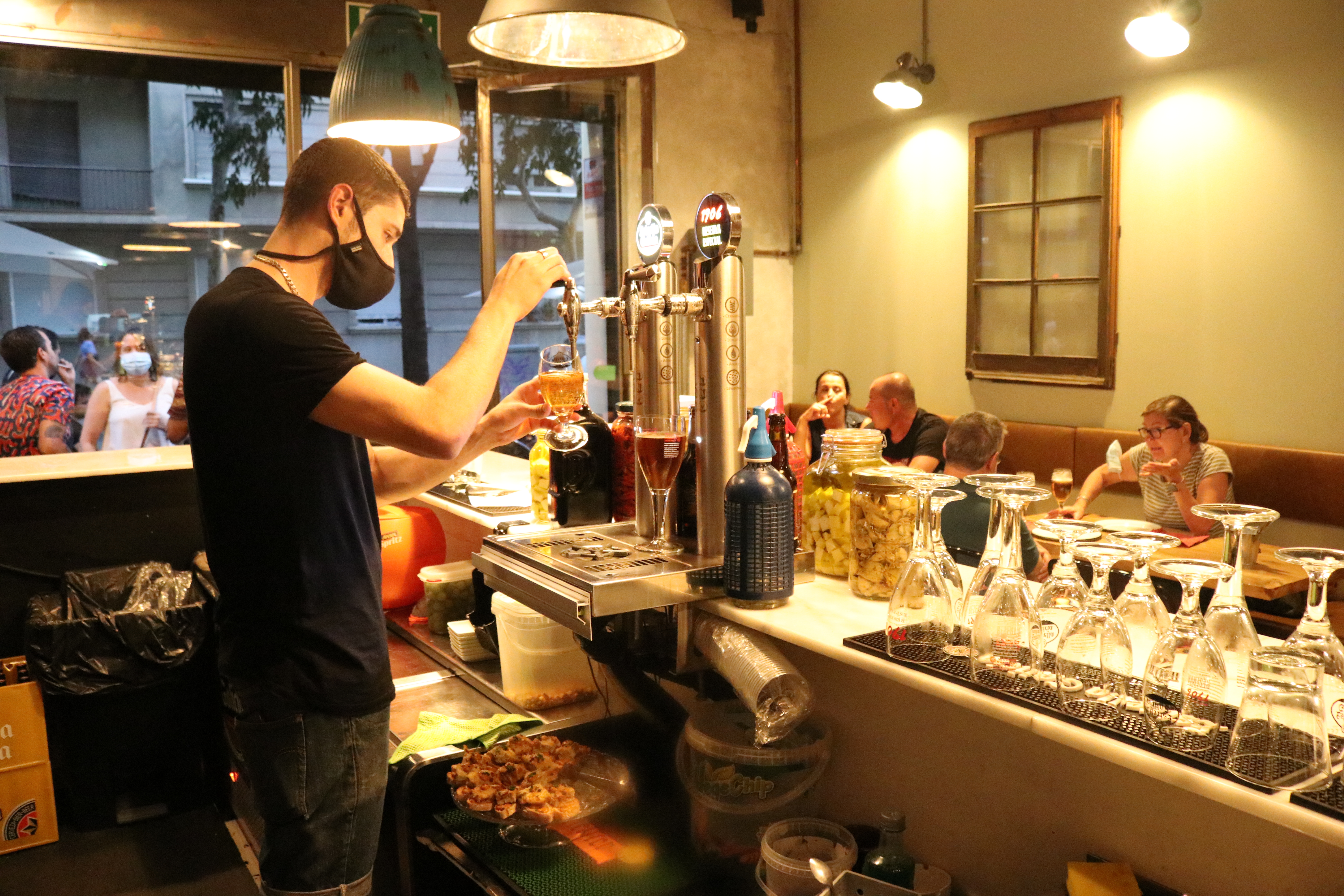 Bomba de patata farcida de ragú de vedella arrebossada amb panko (escates de pa).
